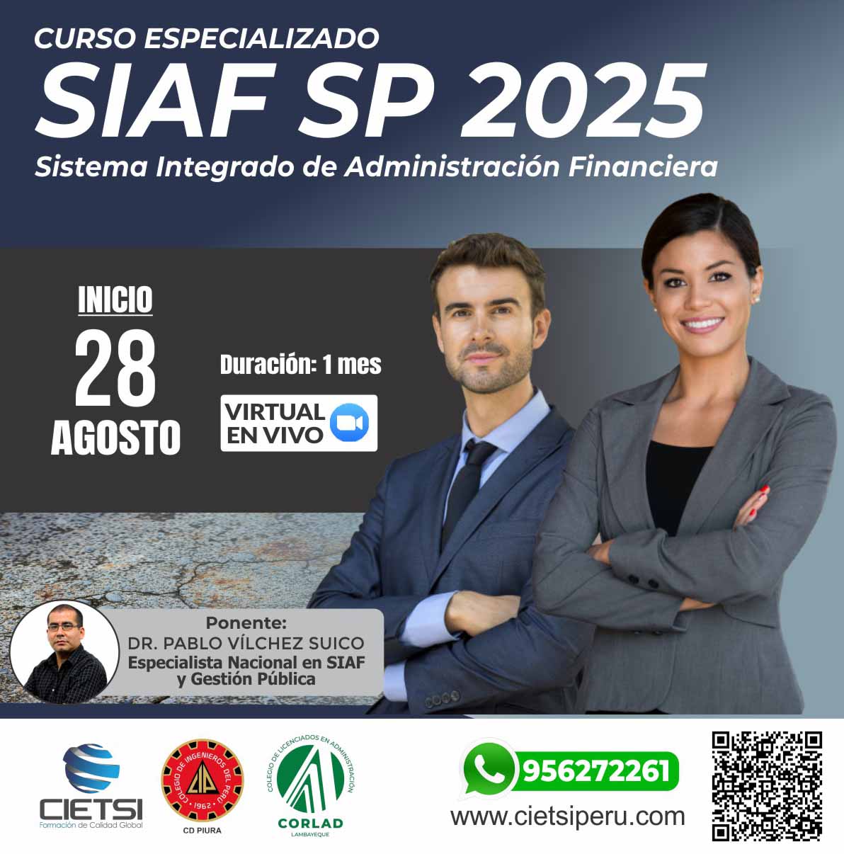 + Incluye DEMO SIAF, instalación gratuita de forma remota y para estudiantes de Chiclayo pueden llevar su laptop a oficina.